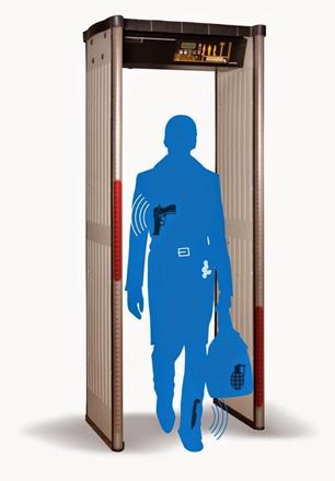 安檢門,又叫金屬探測門。主要是探測乘客身上攜帶的金屬利器。原理也很簡單,就是利用電磁感應的原理。安檢門兩側產生迅速變化的磁場,這些磁場對人體不產生 作用,但金屬例外,因為金屬在迅速變化的磁場下會產生渦電流,而渦電流又會產生一個磁場,當安檢門探測到這個新磁場時,安檢門就會自動發出鳴聲或閃燈。