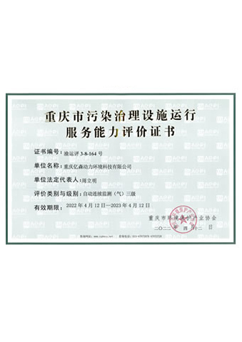 重慶市污染治理設(shè)施運(yùn)行服務(wù)能力評價證書